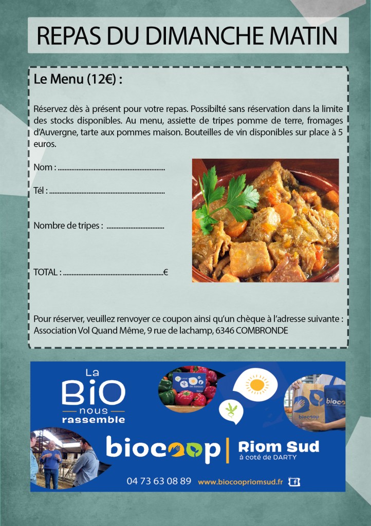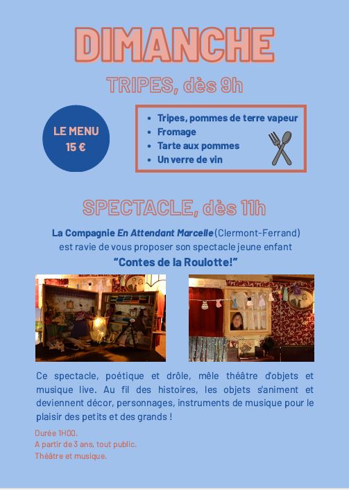 - 09h00 REPAS convivial : Trippe