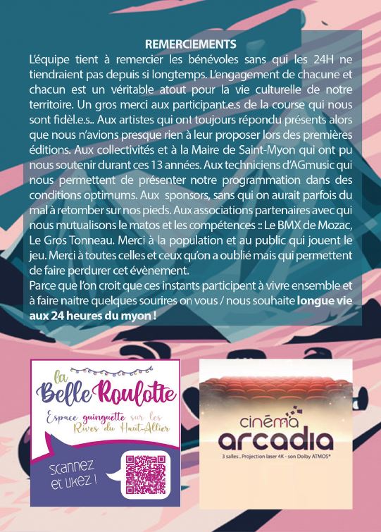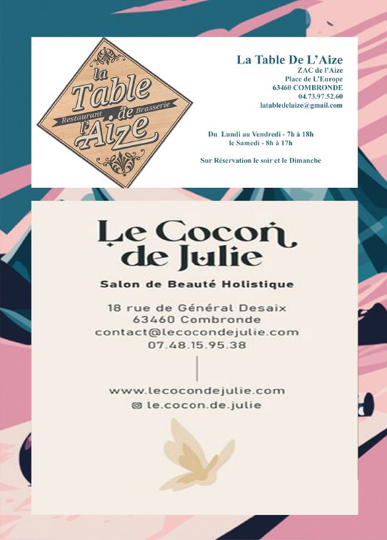 Un grand merci à nos fidèles partenaires pour leur soutien et leur participation aux lots : Flor’ Ever, Biocoop Riom Sud, Le Cocon de Julie, Relax Auto, Les petits bocaux, Laiterie Dischamps, Le Parc Ecureuil, Cinéma Aracadia, le Marcheix de Boubou.