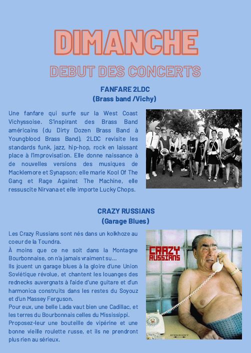 - Toute la journée : Animations sur place: jeux ludiques, châteaux gonflables, buvette, restauration…